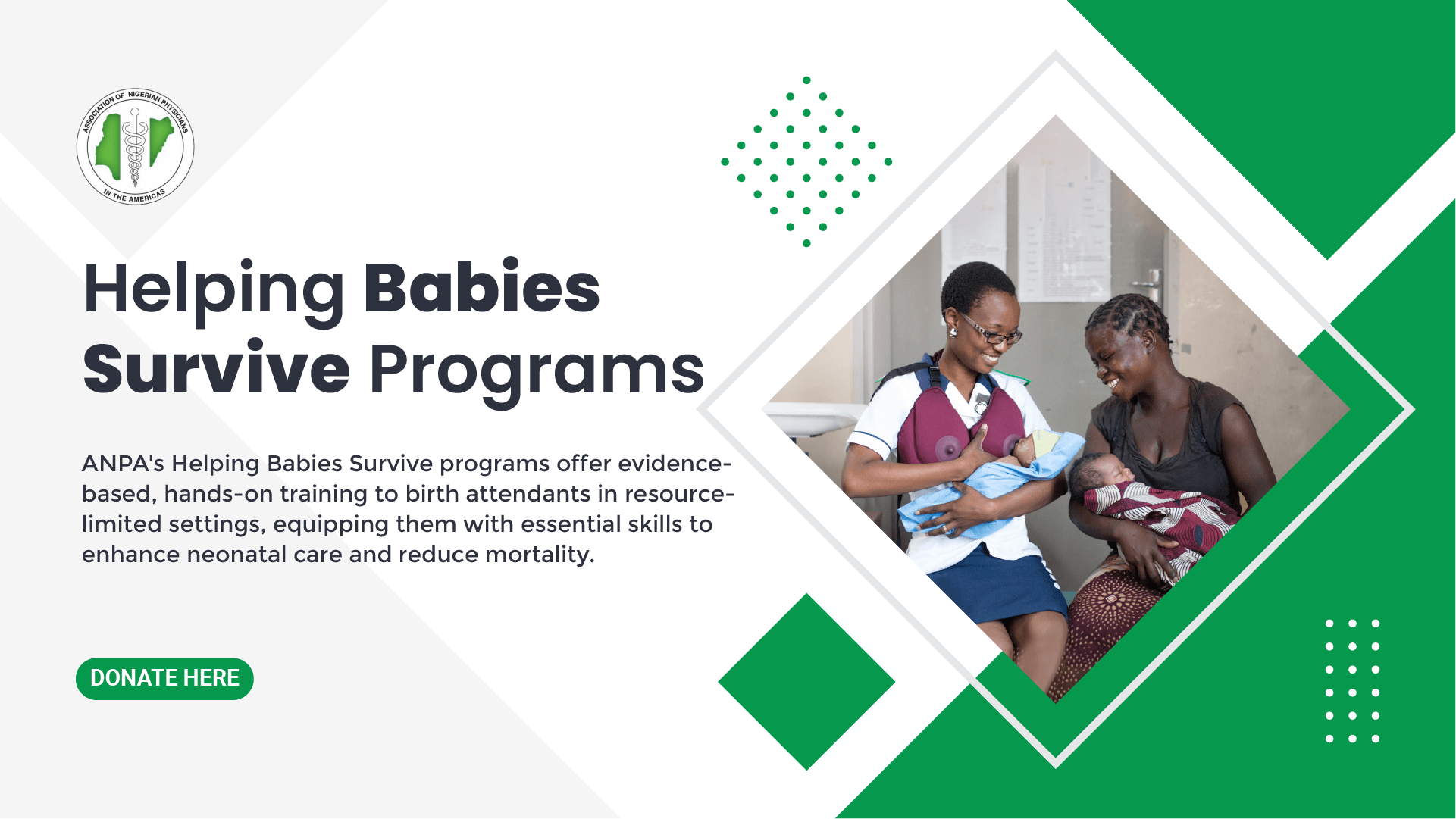 Your donation will directly fund our programs, such as: ANPA Stop-The-Bleed Campaign, ANPA ECHO Programs, The Cervical Cancer Awareness Program, The Helping Babies Survive Programs, The Malaria Awareness Program, The ANPA Stem Program, The Colonoscopy Unit Project in UBTH.
